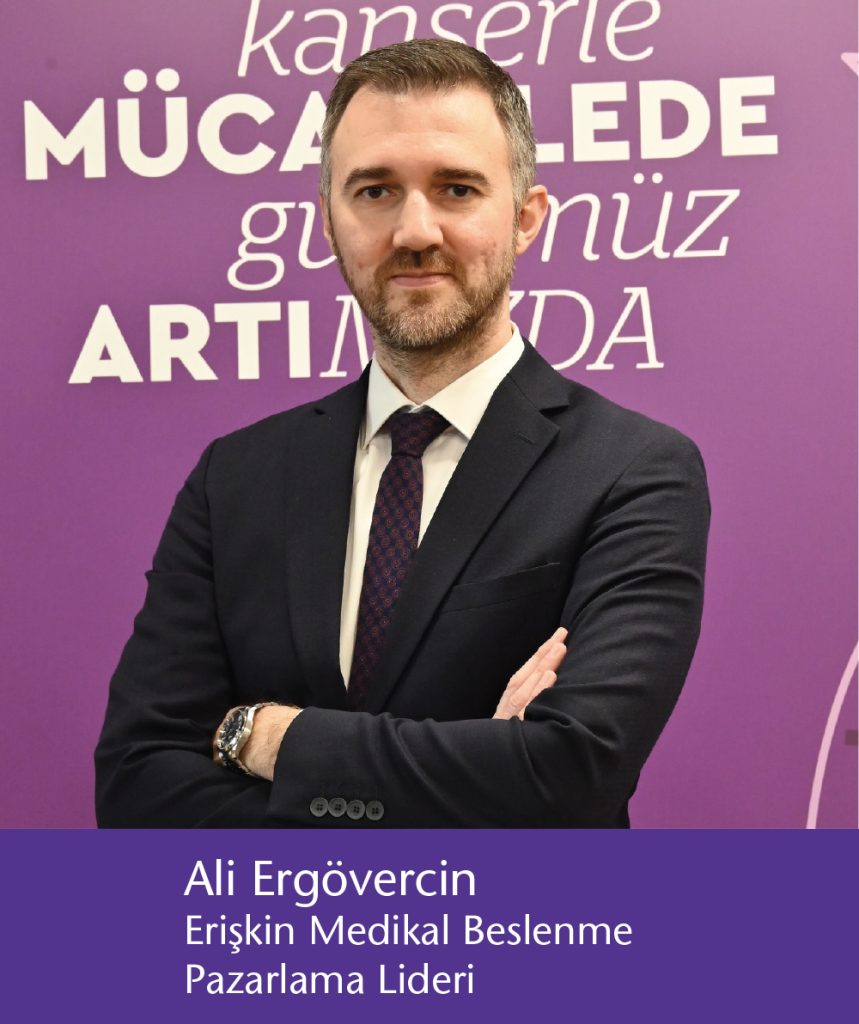 Ali Ergövercin: Bizim için her ‘+’ (beslenme, bilim, destek, umut, dayanışma, erişilebilirlik) kanserle mücadele sürecine eklenen yeni bir gücü temsil ediyor. Klinik kanıtlarla desteklenen medikal beslenme çözümleri, Ar-Ge çalışmaları ve uluslararası bilimsel iş birlikleri bu yaklaşımın temelini oluştururken; çalışma arkadaşlarımıza sunduğumuz güvence modelleri, psikolojik ve sosyal destek uygulamaları, sağlık profesyonelleri ve sivil toplumla yürüttüğümüz iş birlikleri de bu etki alanını genişletiyor. Örneğin; 2001 yılından beri Türkiye’de bir ilk olarak hayata geçirdiğimiz alanında uzman hemşirelerle ücretsiz bilgilendirme ve destek hizmeti sunuyoruz. Öte yandan, uzman diyetisyen eşliğinde hazırlanan, pratik ve evde kolaylıkla yapılabilecek tarifler geliştiriyor, gerekli olduğu durumlarda hastalarla paylaşabilmeleri adına hekimlerle iş birliği yapıyoruz. Aynı zamanda Türkiye’de gerçekleştirdiğimiz yerli üretim yatırımlarıyla artırdığımız erişilebilirlik de bu bütünün önemli parçaları arasında yer alıyor.